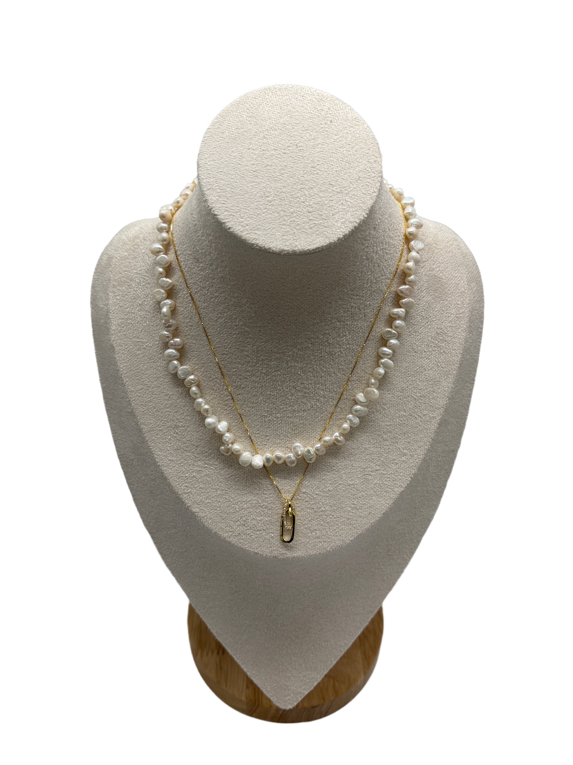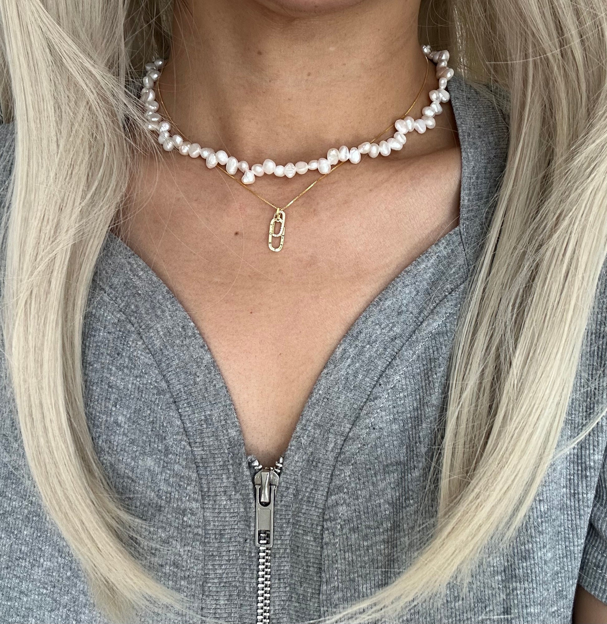 This set includes a natural freshwater Baroque pearl necklace and a gold-plated zirconia necklace, both made from sterling silver with gold plating. The pearl necklace has a 37cm chain plus a 5cm extension, and the zirconia necklace has a 40cm chain with a 5cm adjustable length. They can be worn together or separately, perfect for both special occasions and everyday use.