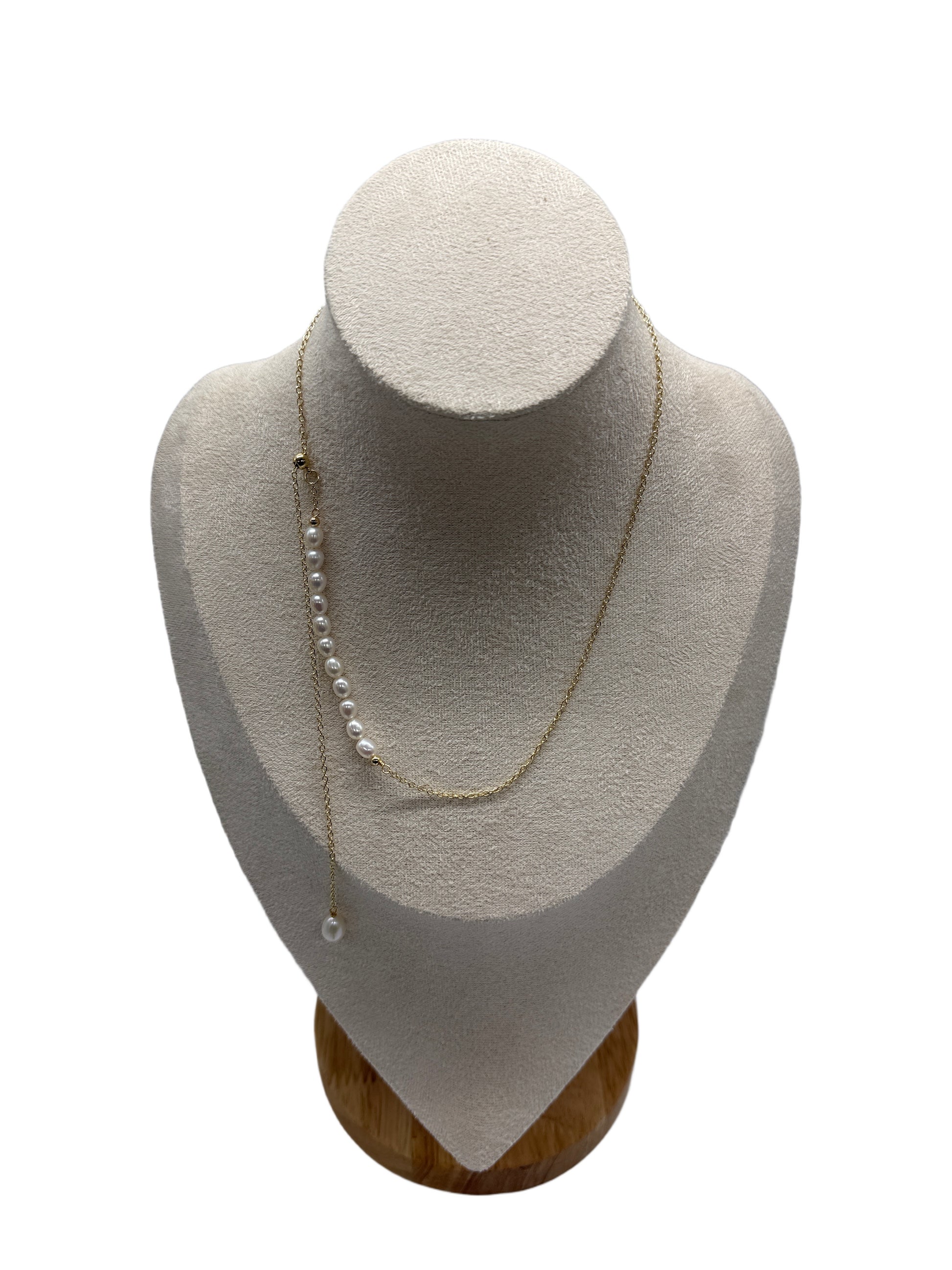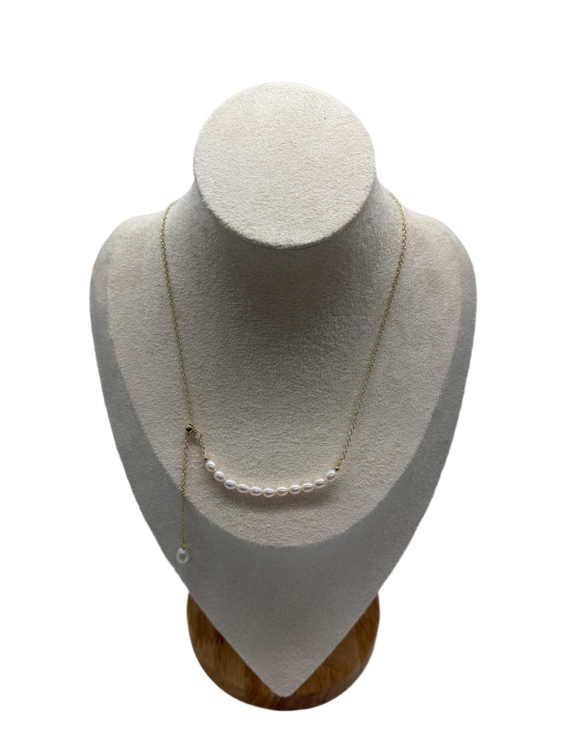 This elegant necklace features natural freshwater pearls set on a 14K gold plated sterling silver chain. With an adjustable length of 37cm plus a 6cm extension, it offers a perfect fit for any occasion. A timeless and refined accessory to elevate your look.