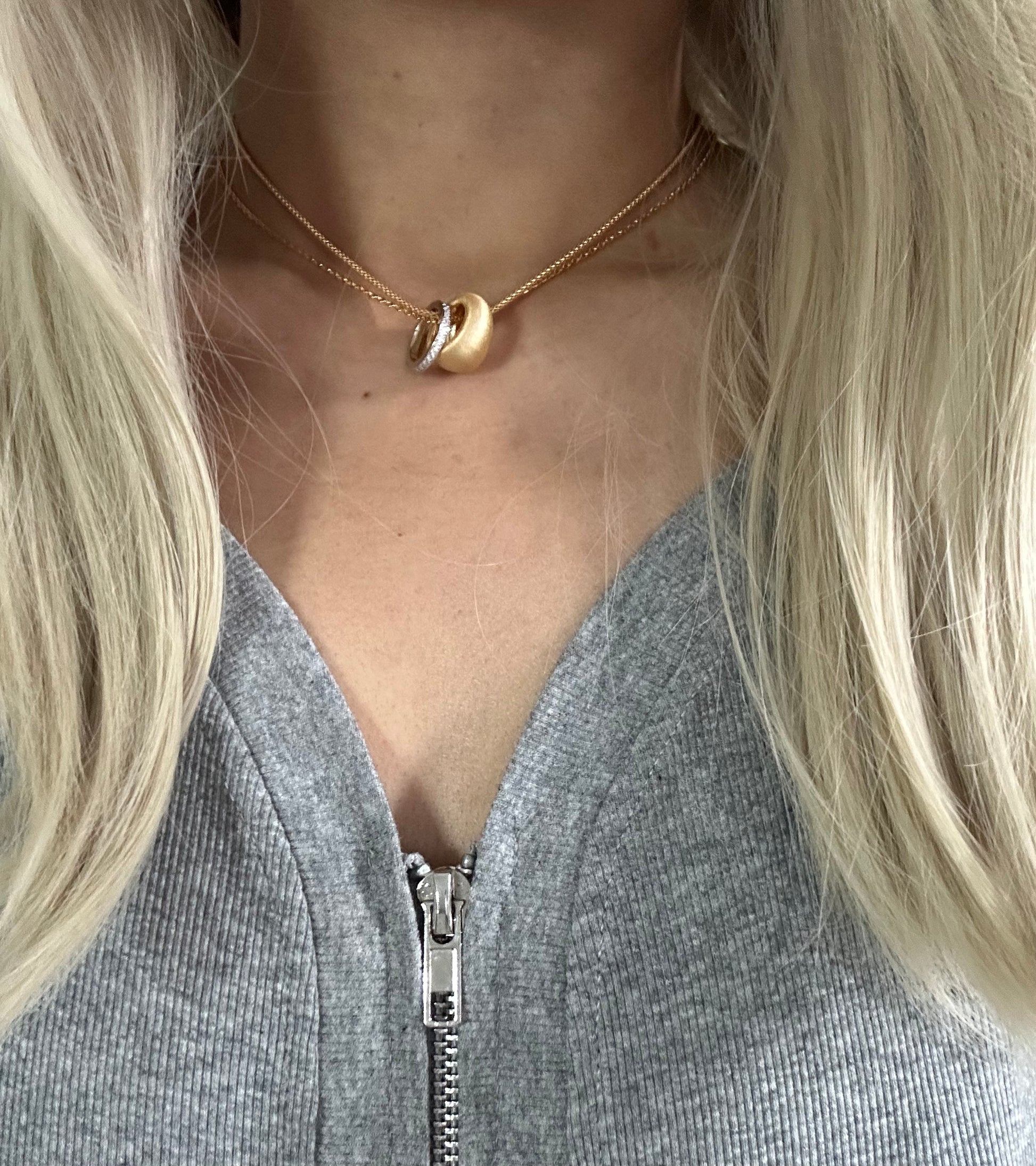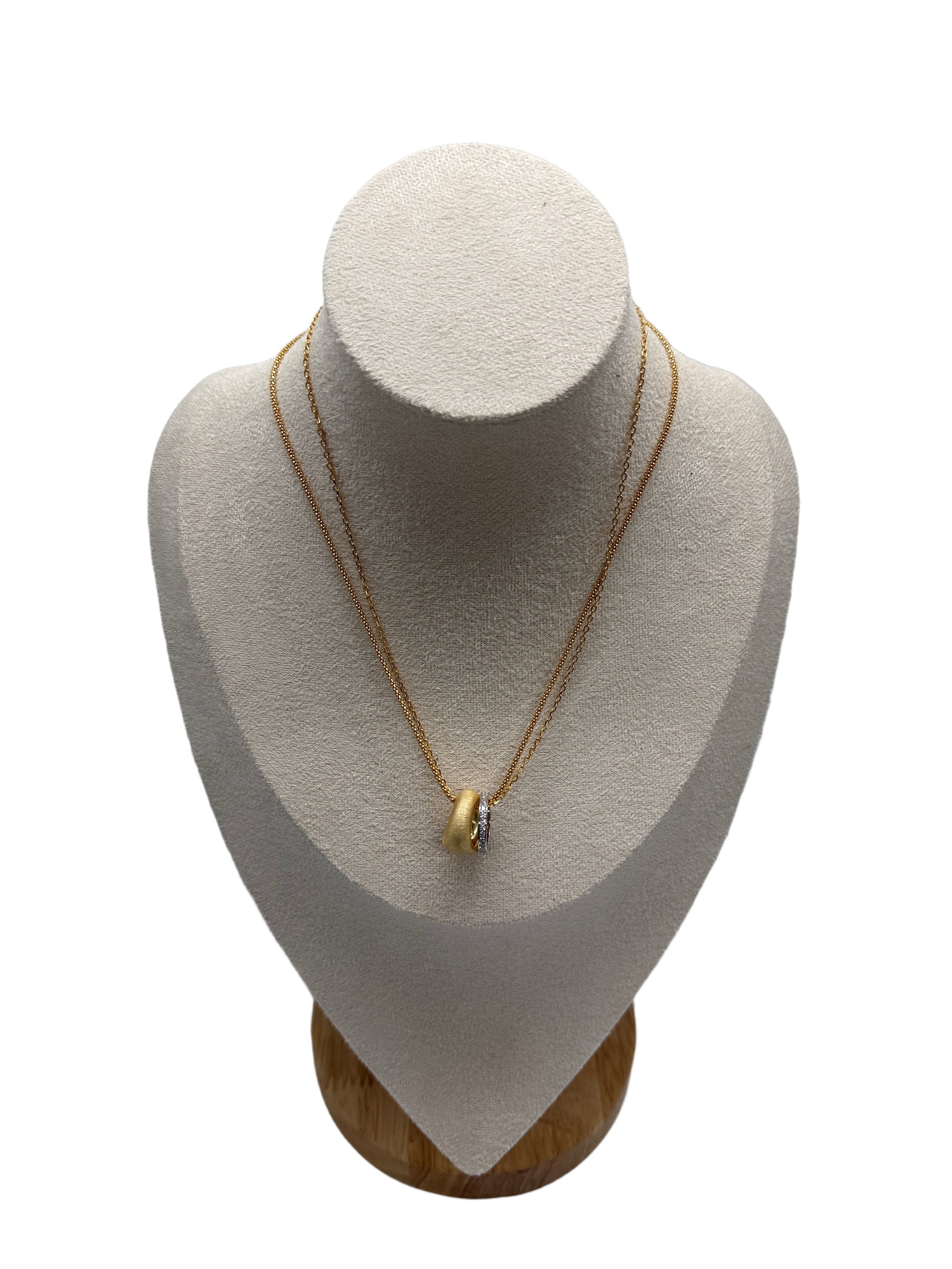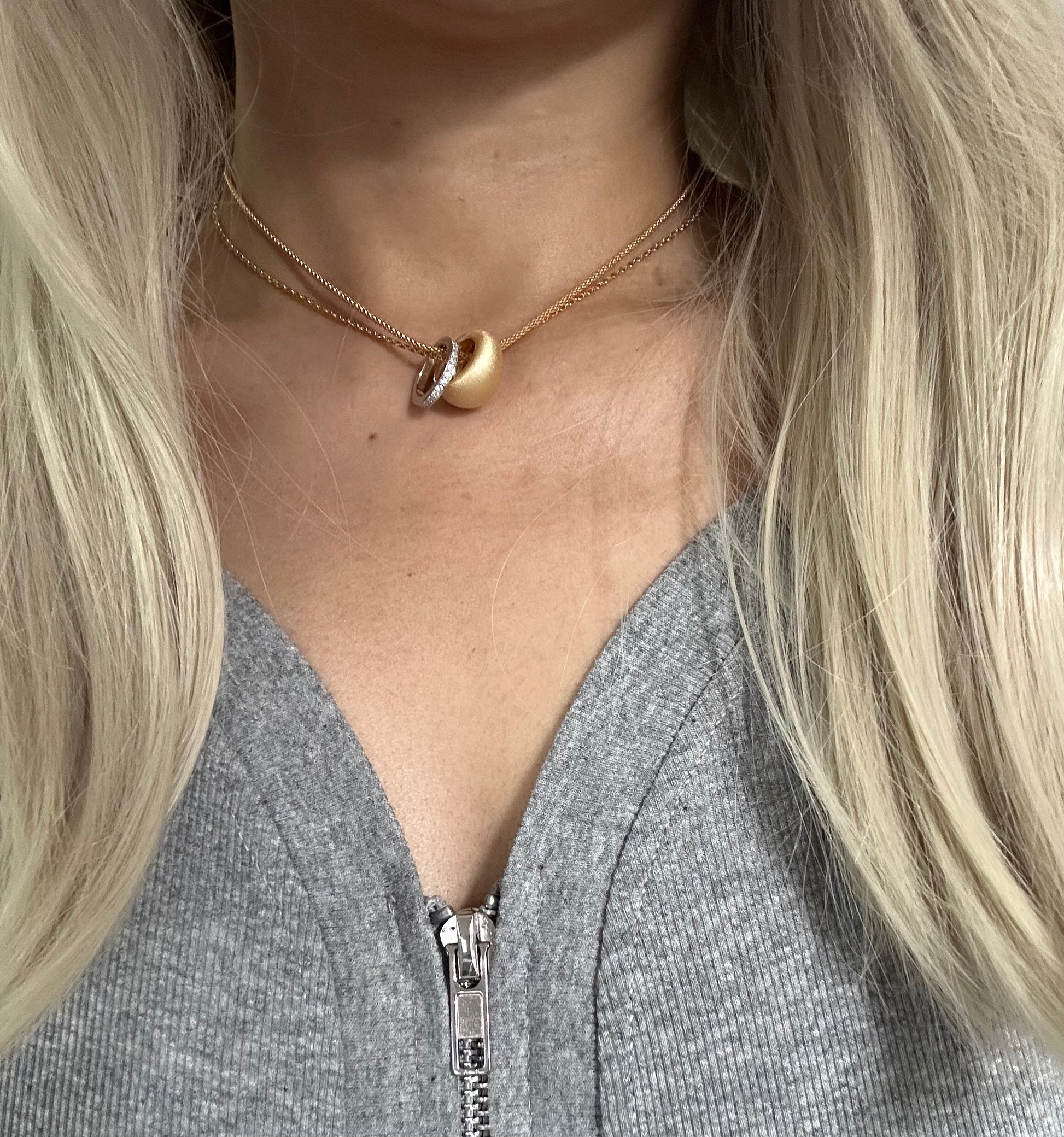 s925 Sterling Silver 18K Gold Plated brushed Two-Tone Rings Necklace