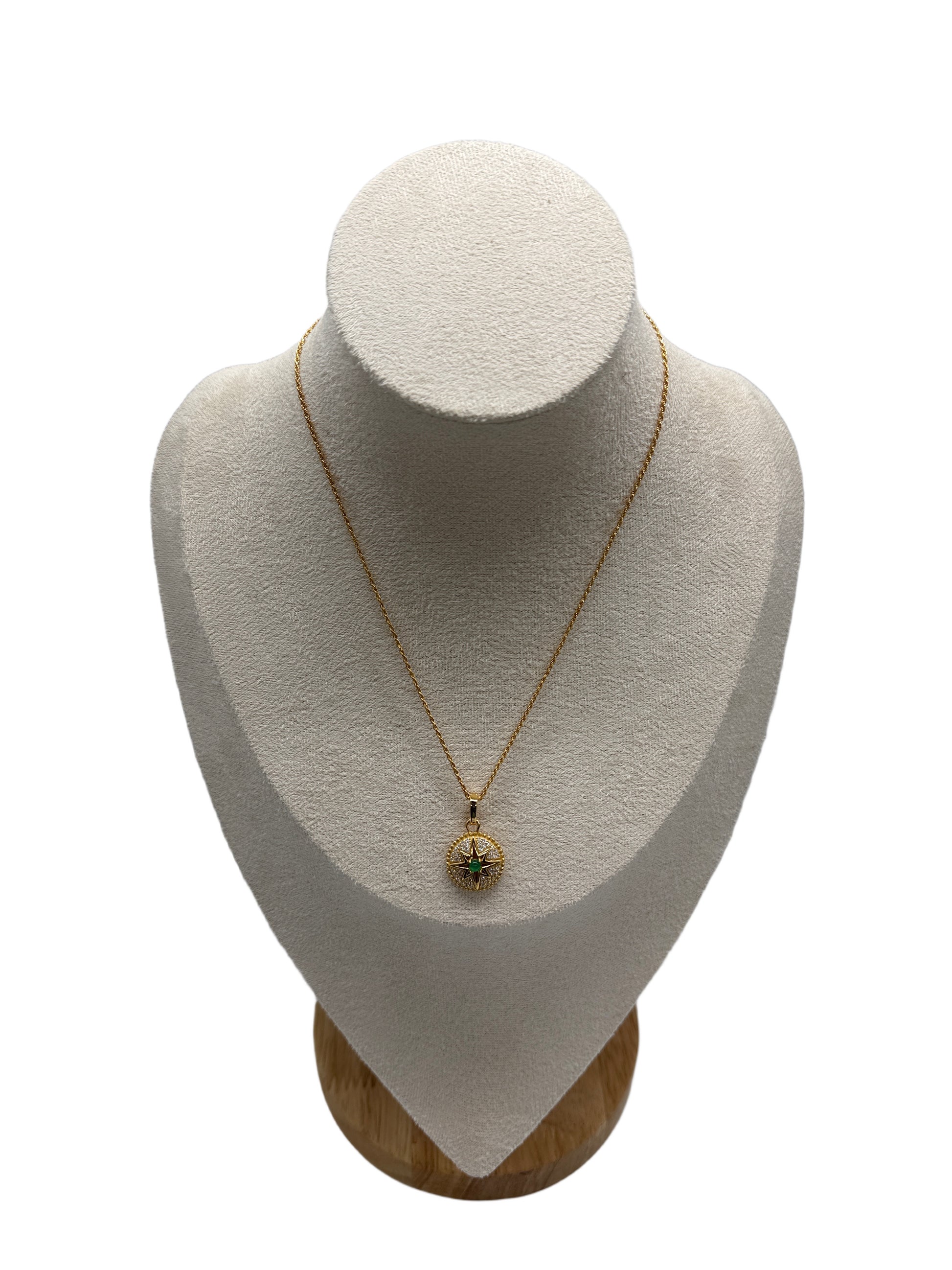 This elegant necklace features gold plated s925 sterling silver, natural green stone, and sparkling zirconia. Its vintage inspired design and adjustable 40cm chain add timeless sophistication to any outfit.