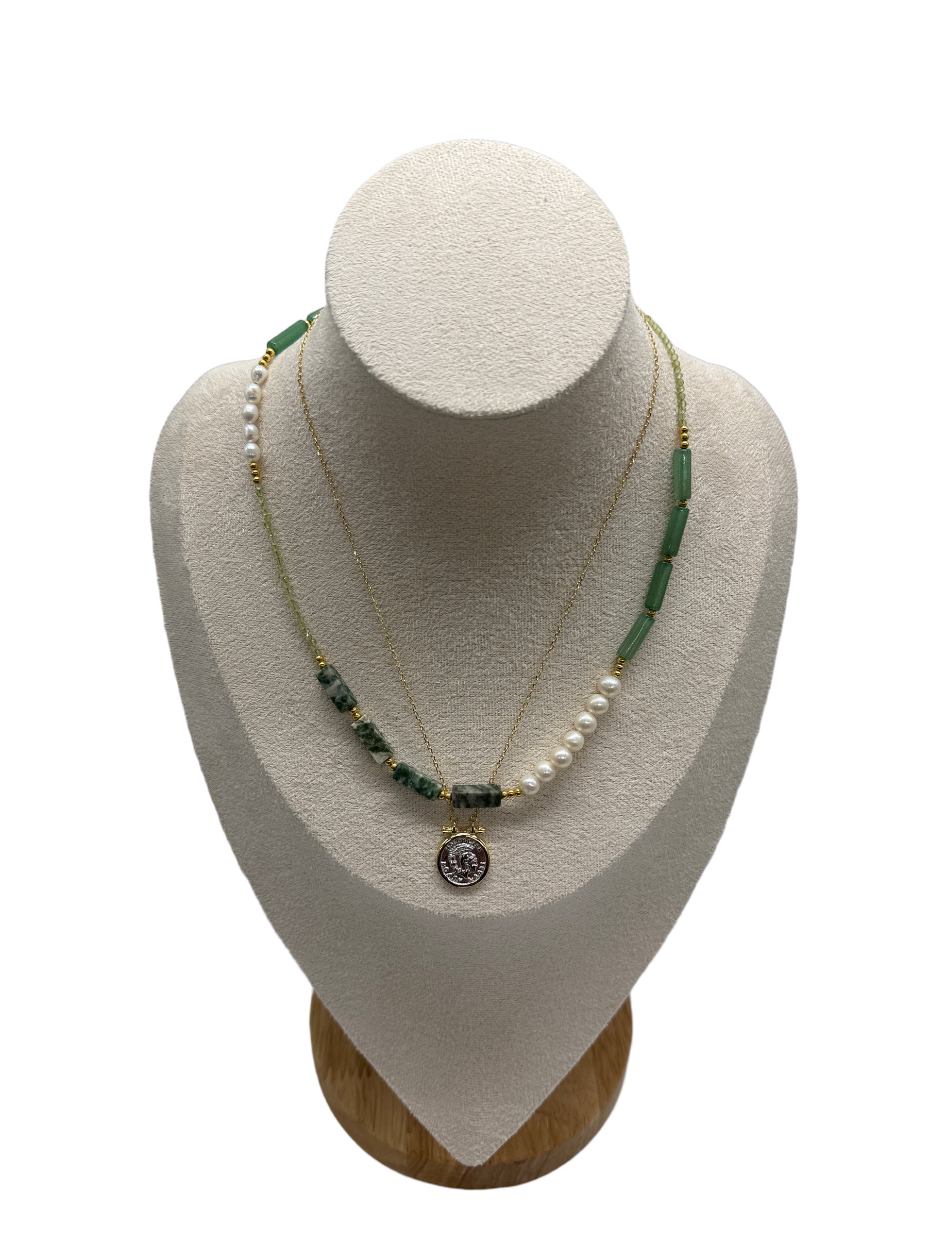 This set includes a turquoise and pearl necklace and a Roman Empire knight pendant necklace, both made from s925 sterling silver with gold plating. The necklaces have adjustable chains for a comfortable fit and can be worn together or separately, adding classic style and historical charm to any outfit.